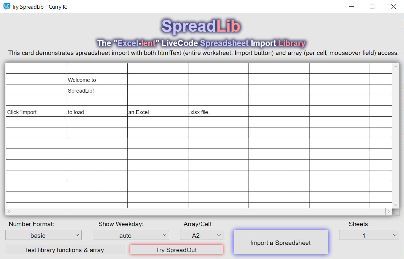 Display a spreadsheet in an LC field with a single statement: SpreadLib is a one-liner in the Curry K. tradition, keeping things simple but powerful.