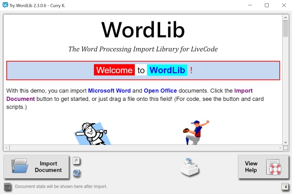 Import MS Word and OpenOffice documents right into LiveCode with the amazing and popular WordLib addon!